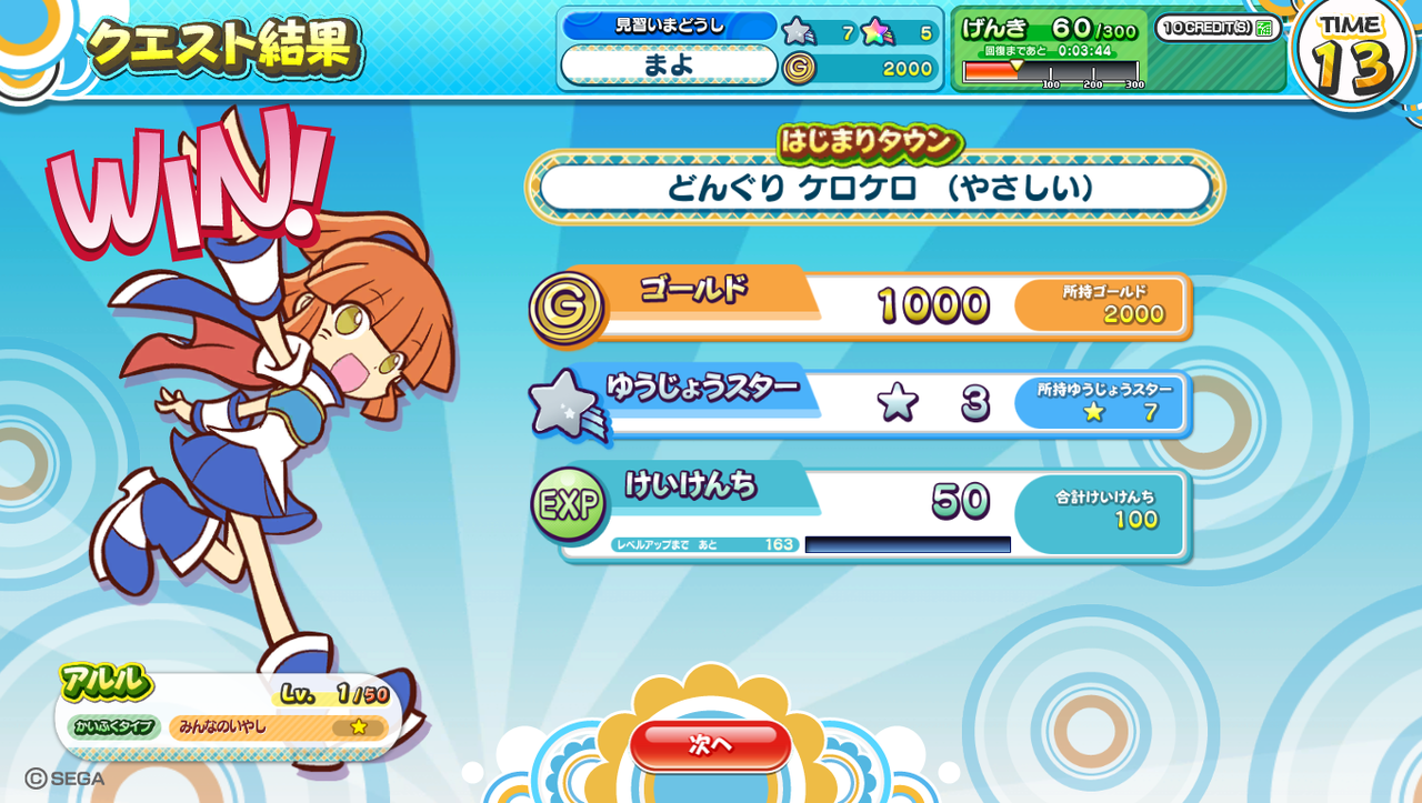 『けいけんち』をためると、プレイヤーキャラクター(アルル)のレベルが上がるよ~!
