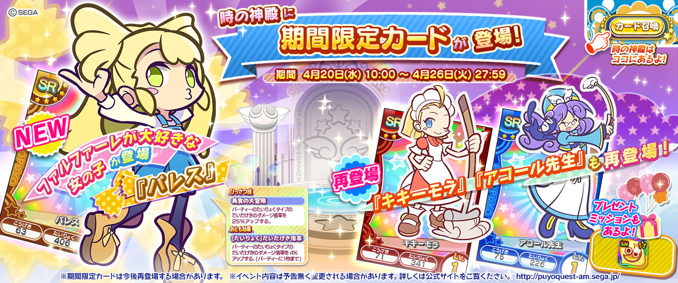 あたらしいカードがゲットできる、時の神殿も開かれるよ!
