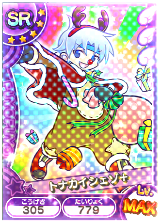ハッピークリスマス 消費MP40 5ターンの間、 たいりょくを40%、 かいふくしつづける。 |