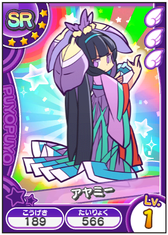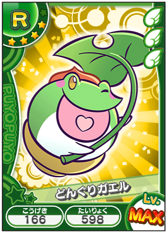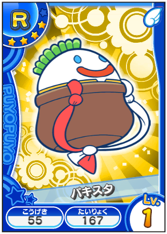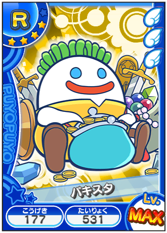 だいだげきアップ・青ぷよ 青ぷよを30こ消すたび、全カードの だいだげきの確率が3%アップする。 (1キャラに1枚まで、効果は永続) |