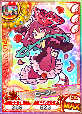だいだげきアップ・赤ぷよ 赤ぷよを30こ消すたび、全カードの だいだげきの確率が3%アップする。 (1キャラに1枚まで、効果は永続) |
